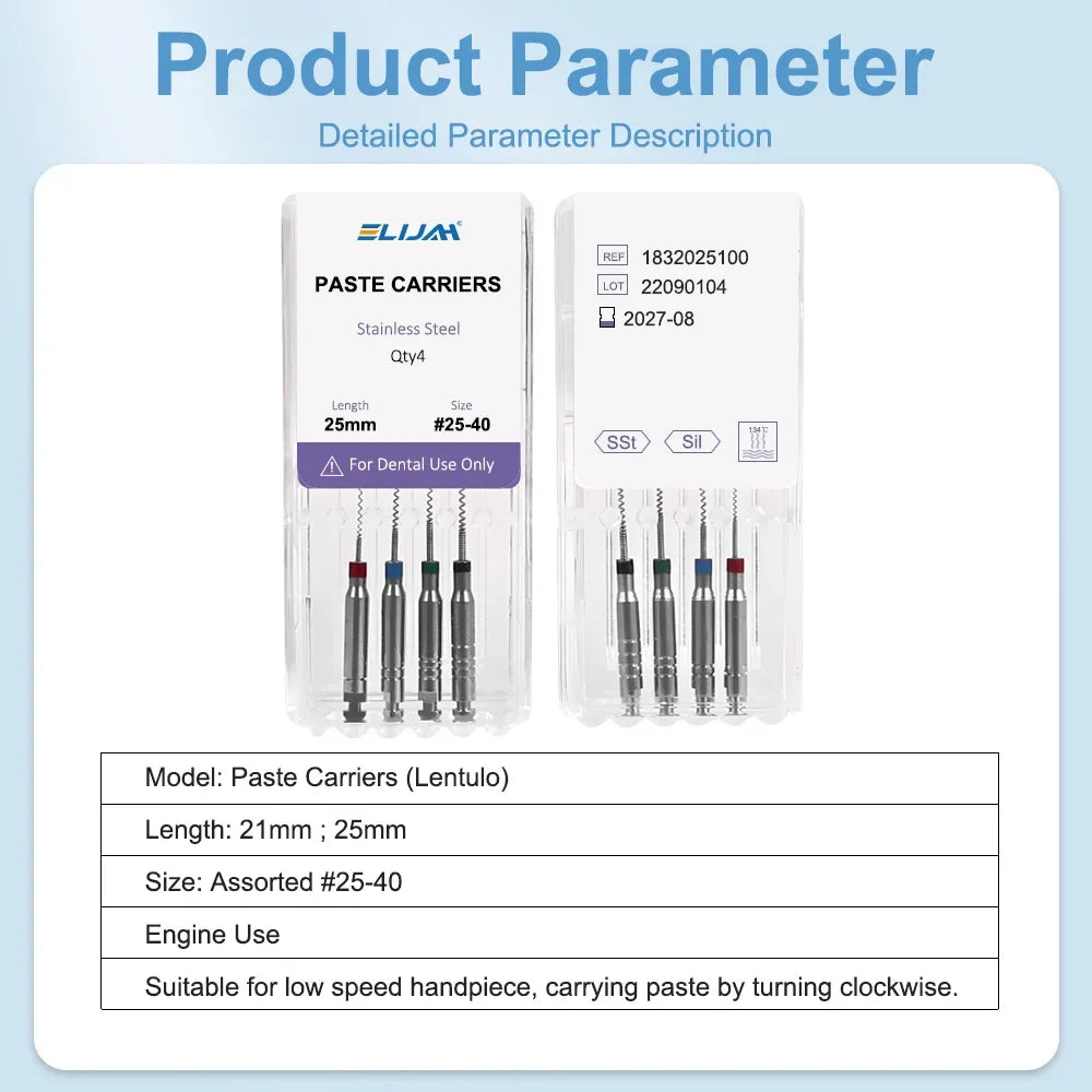 ELIJAH 10Packs Dental Rotary Paste Carriers Spiral Filler Lentulo Assorted Engine Filling Paste 21/25mm 25#-40# Dentistry Tools
