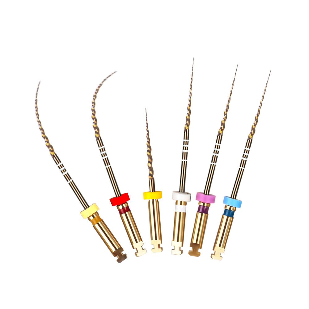 ELIJAH 6Pcs Dental Heat Activation Super File Gold Rotary Flexible Engine Taper Files Root Canal Dentistry Instrument Material