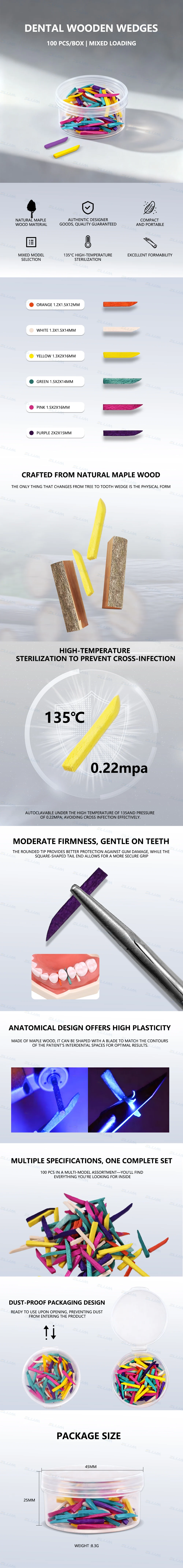 ELIJAH 100Pcs/Box Wooden Dental Wedges Crafted From Natural Maple Wood for Dental Restoration, Autoclavable At 135°C Dental Tool