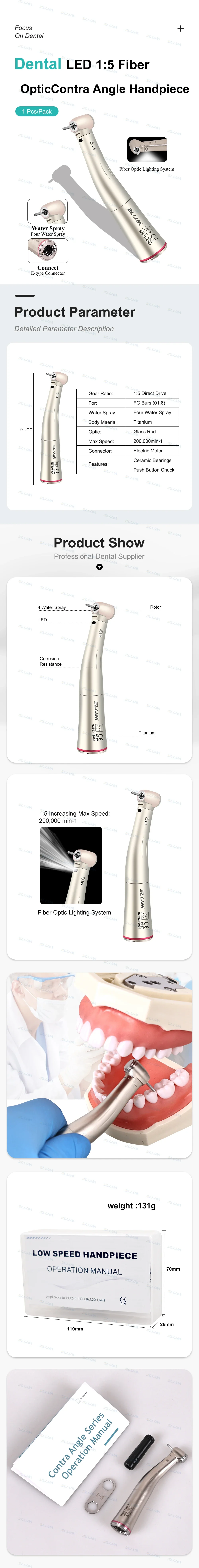 ELIJAH Dental 1:5 Fiber Optic Increasing Speed Handpiece Against Contra Angle LED Optic Fiber Quattro Spray E-tape Push Button