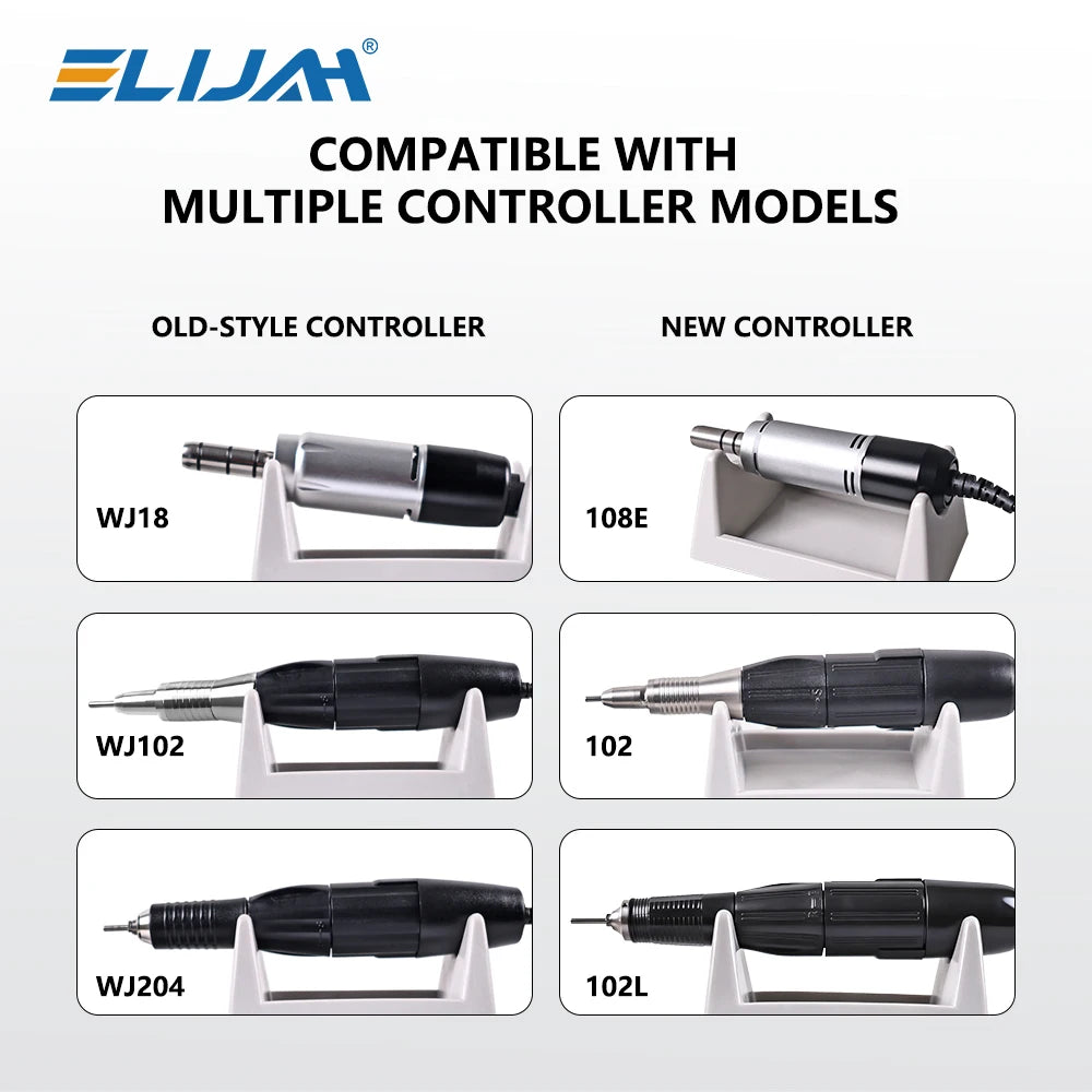 ELIJAH professional dental polishing micro motor with 35000rpm maximum speed. Features portable design, ultra-high speed ball bearings, and non-stage speed control system for precise dental grinding and polishing.