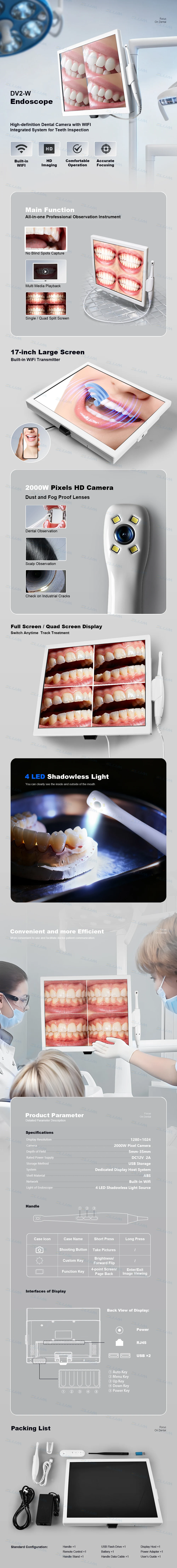 ELIJAH DV2-W Endoscope 4 LED Shadowless Light High-definition Dental Camera with WlFlIntegrated System Dentistry Equipment